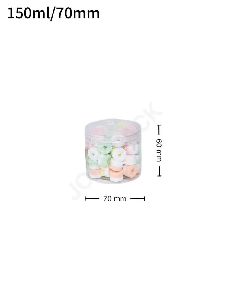 جار 150 مل بلاستيك شفاف بغطاء بلاستيك شفاف 100 حبة