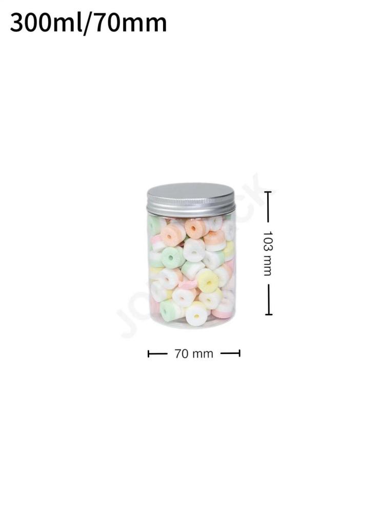 جار 300 مل بلاستيك شفاف بغطاء المونيوم فضي 100 حبة