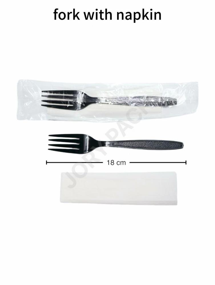 شوكة طعام بلاستيك اسود VIP بغلاف بلاستيك شفاف+منديل 1000 حبة